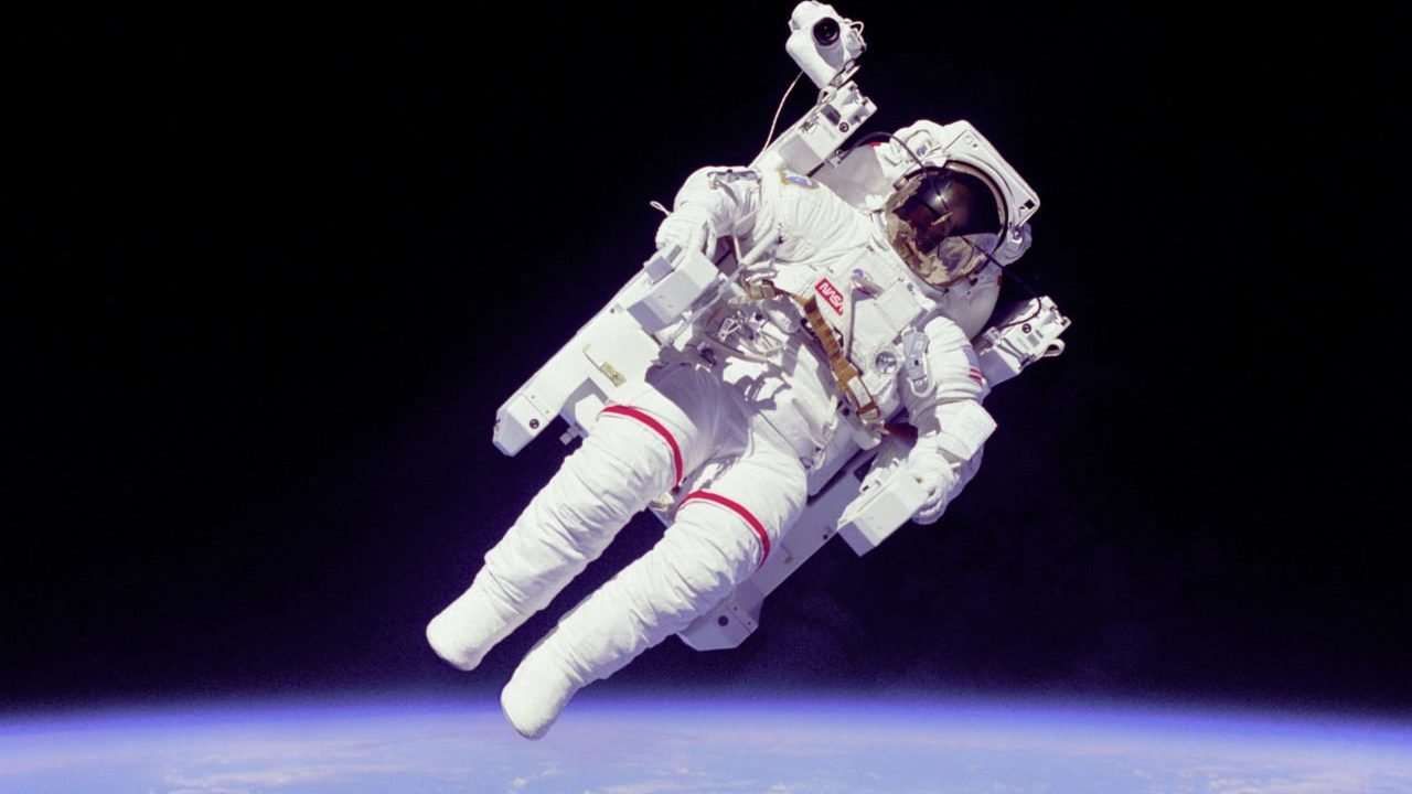 7 февраля 1984 года Брюс МакКендлесс наедине совершил свободный полет над Землей с большим реактивным ранцем.