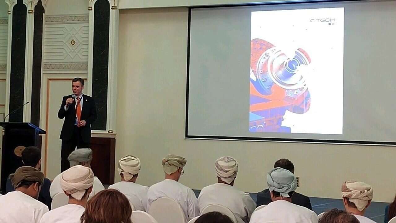 На фото, опубликованном Ctech, можно увидеть как генеральный директор CTech док. Джюнейд Фырат сделал презентацию для делегации Омана.