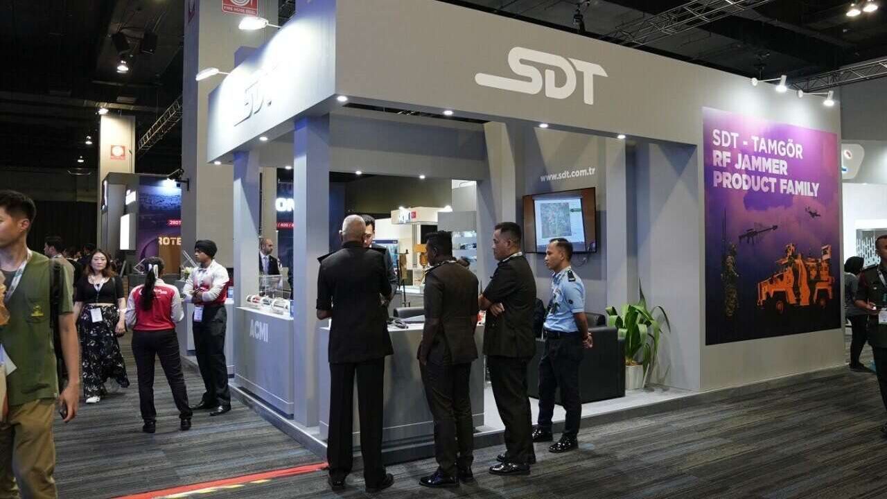 В турецком павильоне SDT представила свою продукцию, например, систему анализа радиочастотных сигналов (ELINT), симулятор управляемых ракет, группу помех для транспортных средств/рюкзаков/мобильных устройств, симулятор военно-морских боев (NAWAS), ACMI Pod, системы перехвата самолетов и т.д.